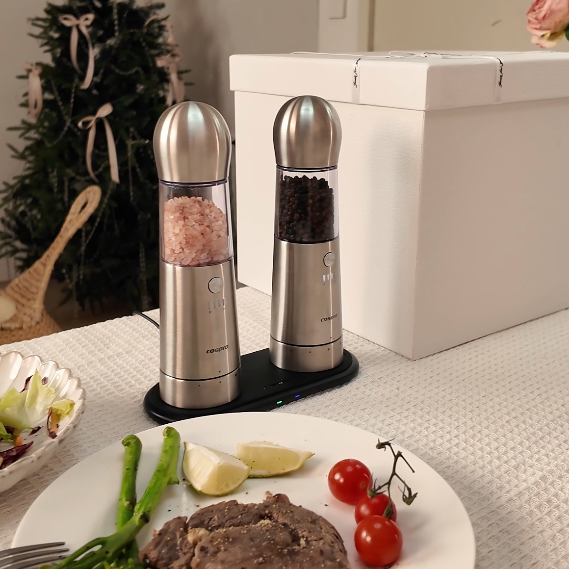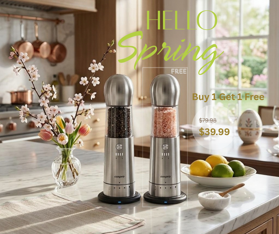 "The COSPRO 3-in-1 Electric Salt & Pepper Grinder Set is a must-have in our restaurant kitchen. Its versatility and durability are perfect for our high-paced environment. The grinders provide precise control over seasoning, and the wireless charging base ensures they are always ready for use."
