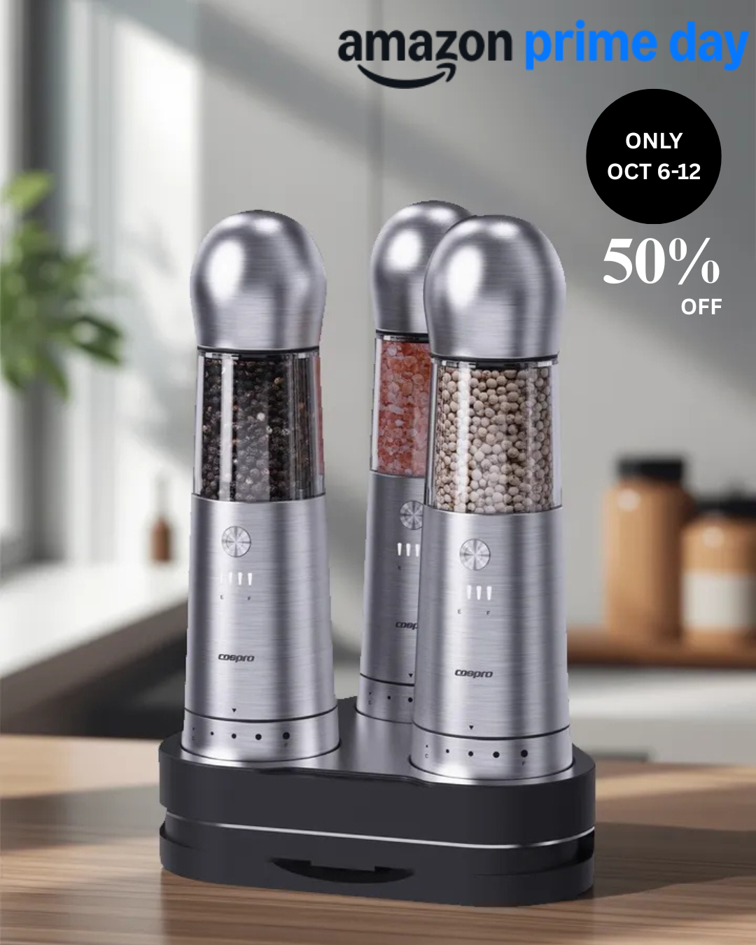 "I love my COSPRO 3-in-1 Electric Salt & Pepper Grinder Set! It's incredibly easy to use with its one-handed operation, and the adjustable coarseness settings let me customize my seasonings perfectly. The wireless charging base is a game-changer, keeping my countertops clutter-free."