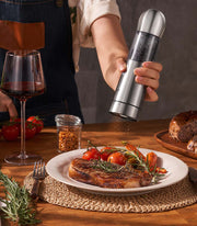 Designed with a sleek stainless steel body, the salt and pepper grinder combines elegance with exceptional durability.
